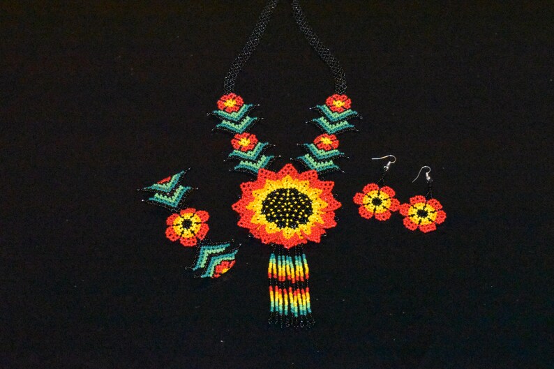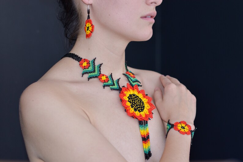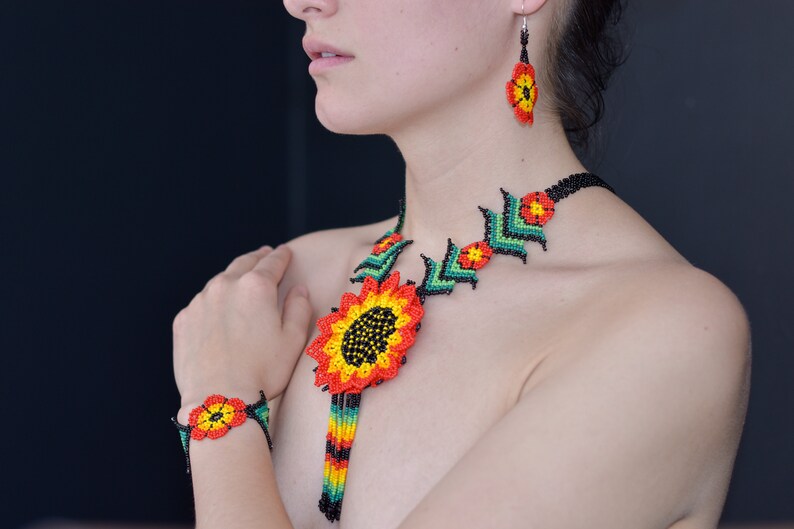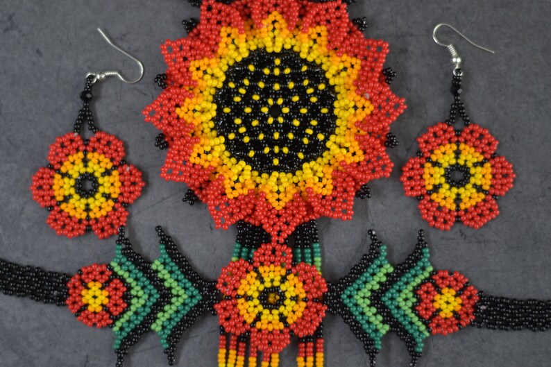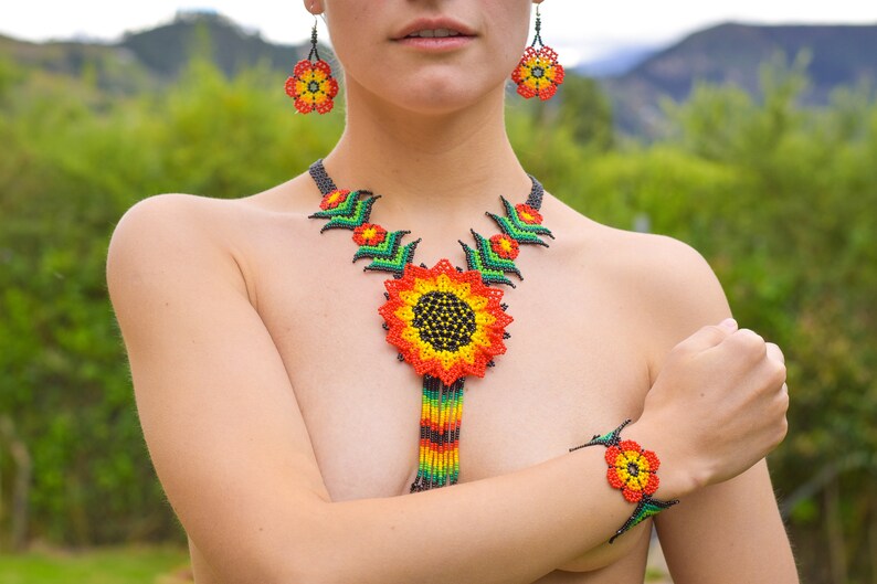Traditional Huichol Glass Beaded Necklace – Unique Handcrafted Statement Piece, Boho Artistry from South America
